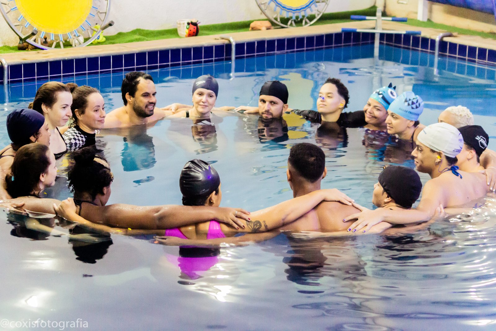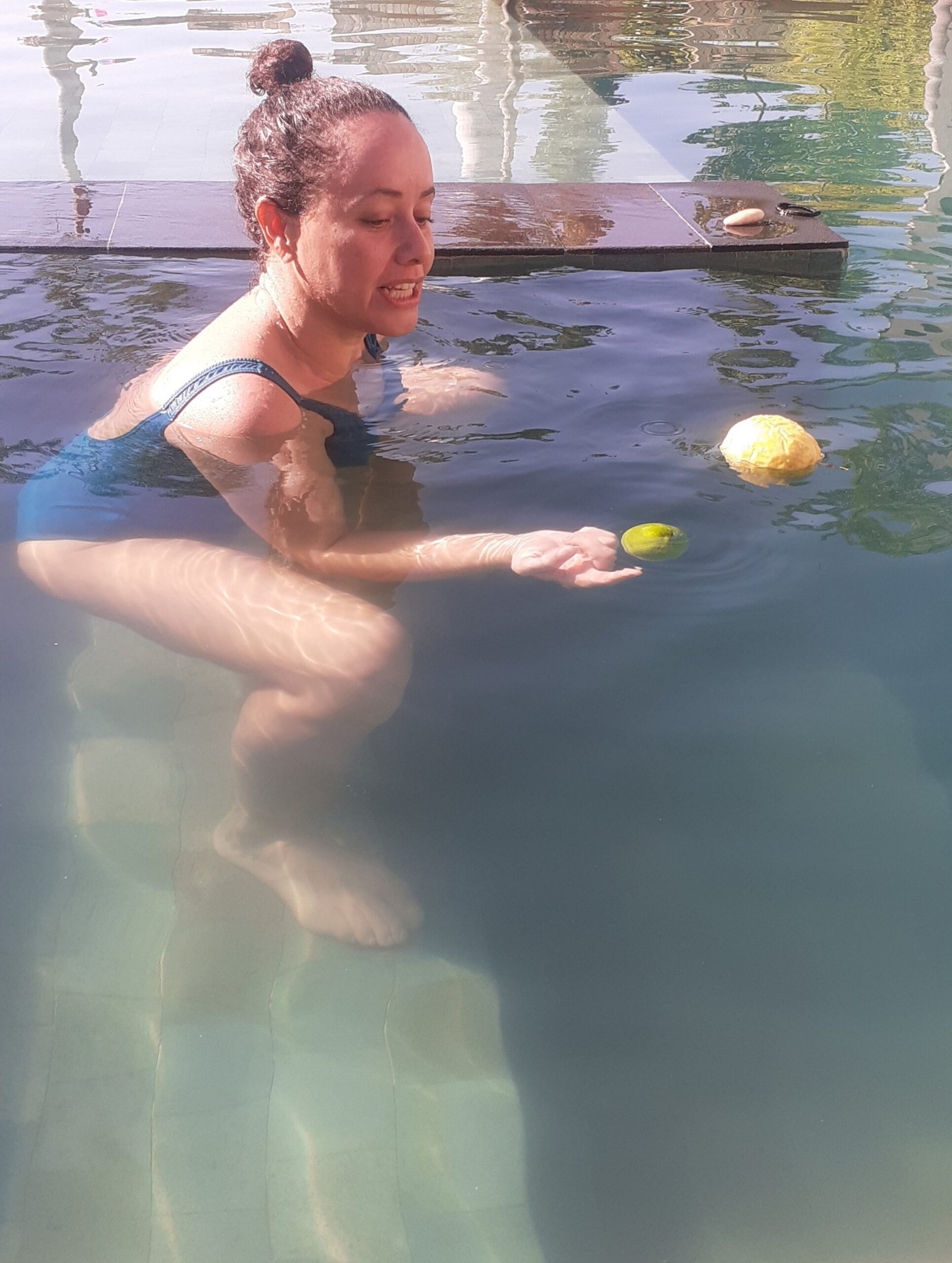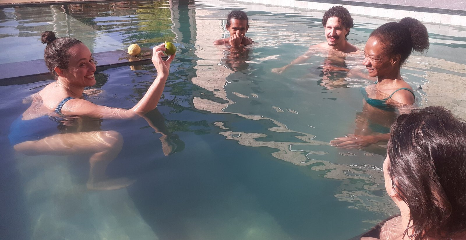 Vivência de dança e experiência aquática. Um momento de encontro e dança com a água, desde o profundo até o lúdico de nossas águas. Partimos de elementos do movimento somático, da improvisação na dança e no contato. Vivenciamos formas de fluir no estar, no dançar e no estar com. Inspirada nas técnicas do Conceito Halliwick, Janzu e Aquahara. Com momentos de dança com a gravidade na terra e na água.